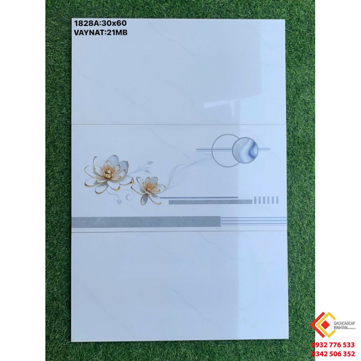 Gạch Ốp Tường 30x60 Vân Trắng Trơn Họa Tiết Bông Hoa Đơn Giản