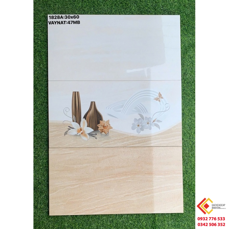 Gạch ốp tường 30x60 màu trắng kem vân đá hoa tiết bình hoa cao cấp